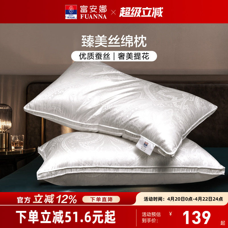 富安娜蚕丝枕头成人护颈椎助睡眠颈椎枕家用枕头芯蚕丝枕一对枕芯