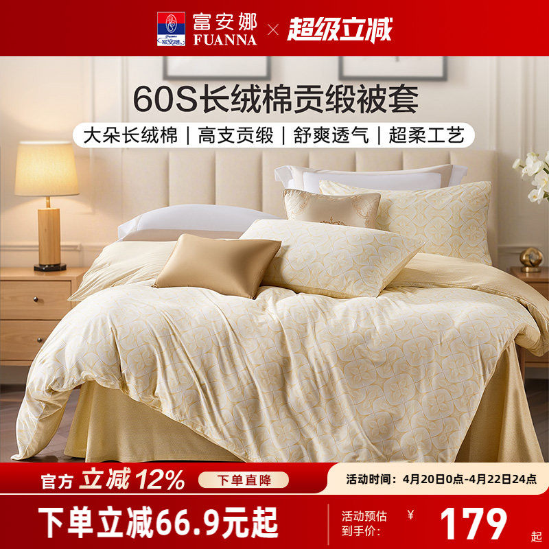 富安娜家纺60支长绒棉被套单件全棉被套单人被罩纯棉被套轻奢床品
