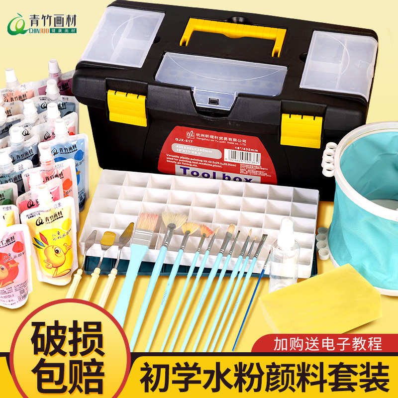 青竹水粉颜料套装幼儿园12色颜料画画工具套装学生用专业绘画工具