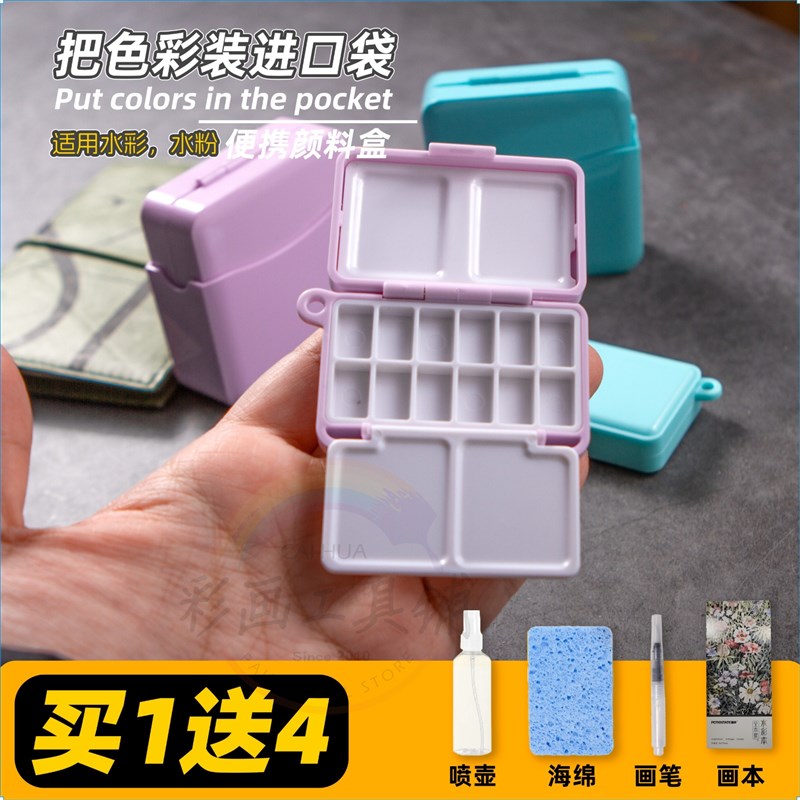 口袋便携颜料盒水彩分装水粉v写生折叠款迷你24色12色颜料调色盒