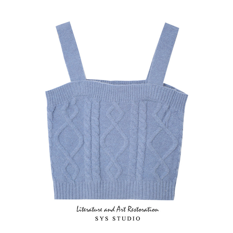 拾野森 秋装新款韩版简约小众复古短款麻花针织毛衣吊带背心外穿