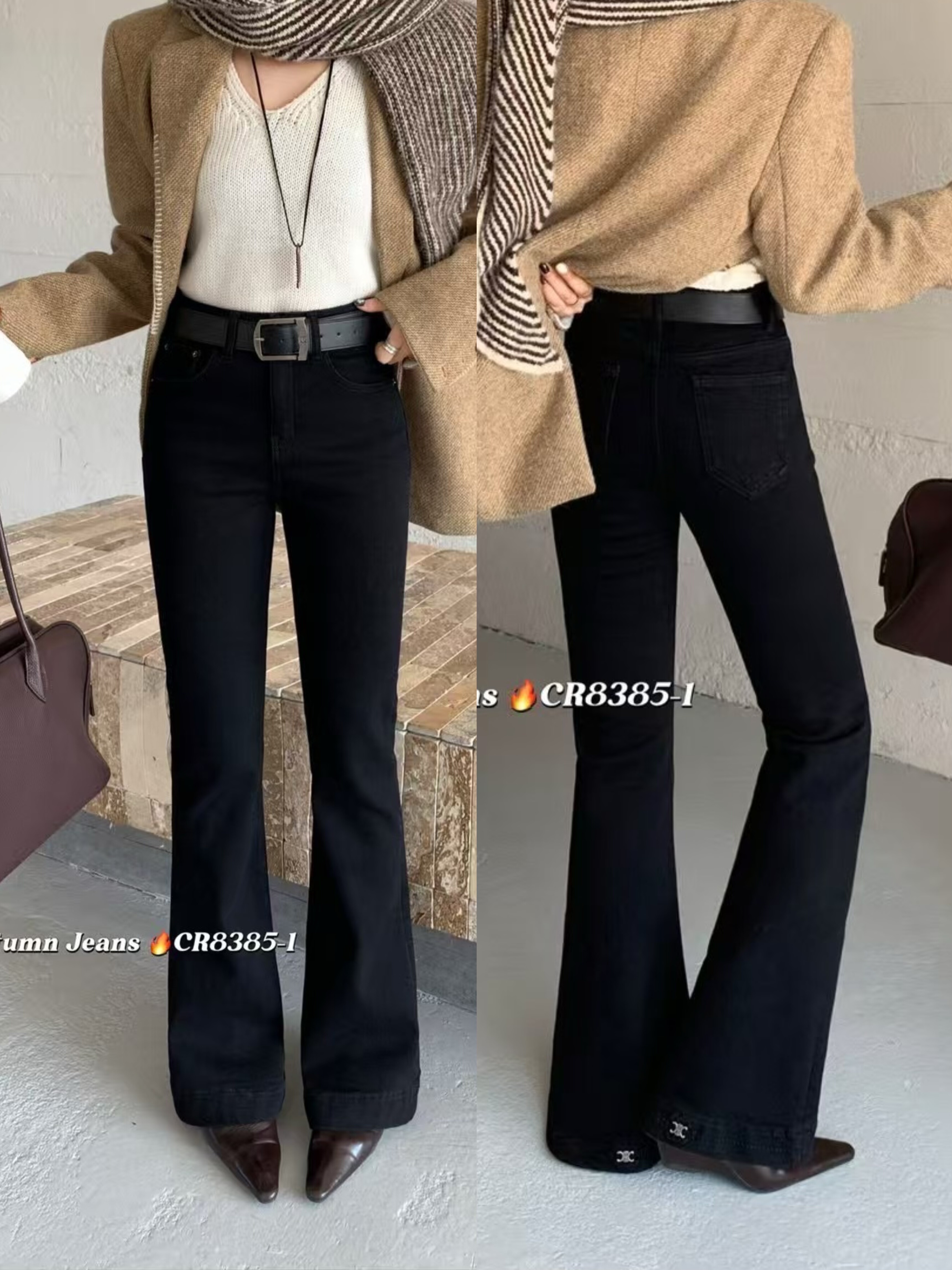 欧洲站欧货蓝舟牛仔裤女2025秋冬加绒黑色喇叭裤高腰显瘦修身长裤