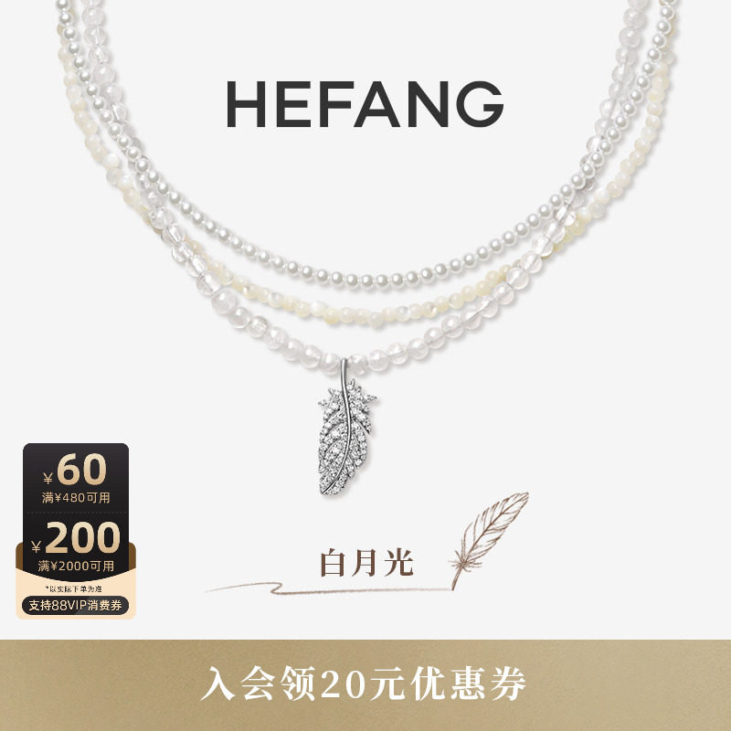 [新品]HEFANG何方珠宝白月光羽毛项链轻奢优雅配饰生日礼物