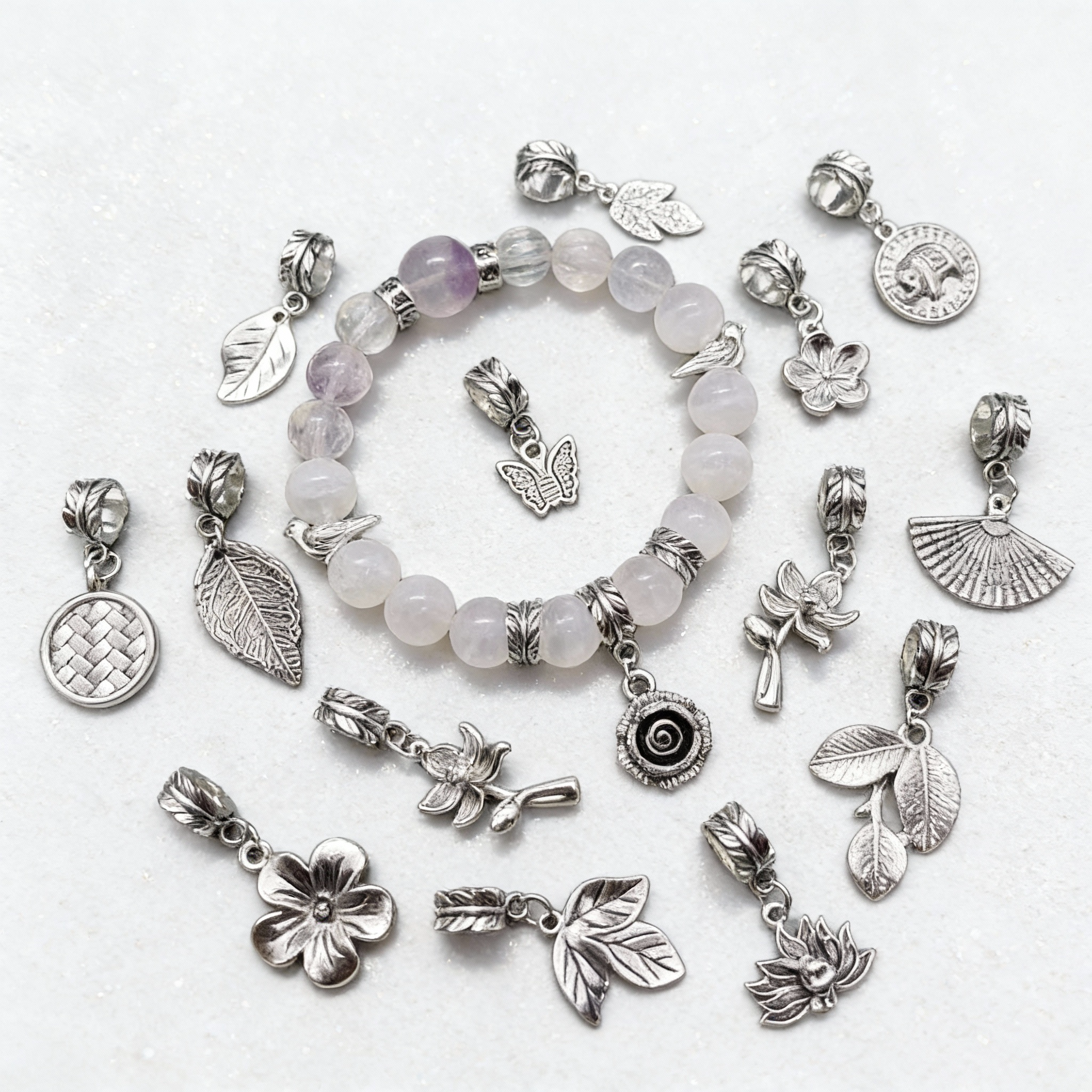 三七老银饰配件羽毛铃兰花莲花小花桃花梅花蝴蝶枫叶吊坠diy手链