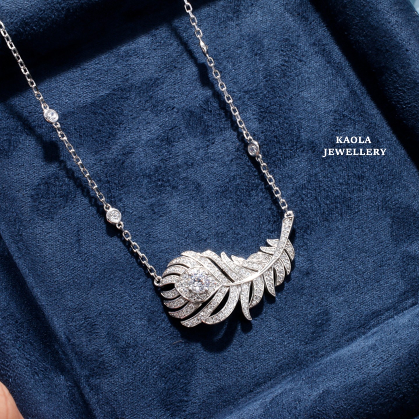 18K白金孔雀羽毛项链 女轻奢纯银满钻叶子锁骨链时尚高级感礼物潮