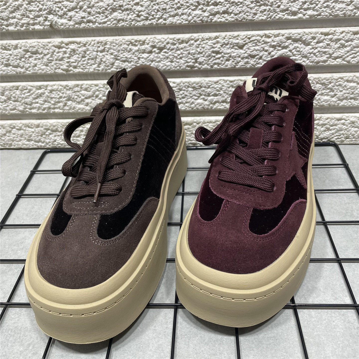 断码处理丝绒德训鞋复古星星板鞋女真皮松糕厚底运动休闲鞋复古鞋