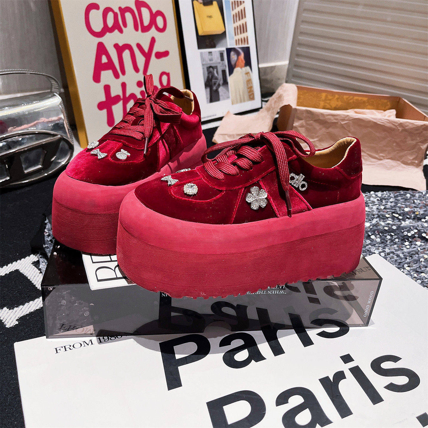 - 大红色运动鞋