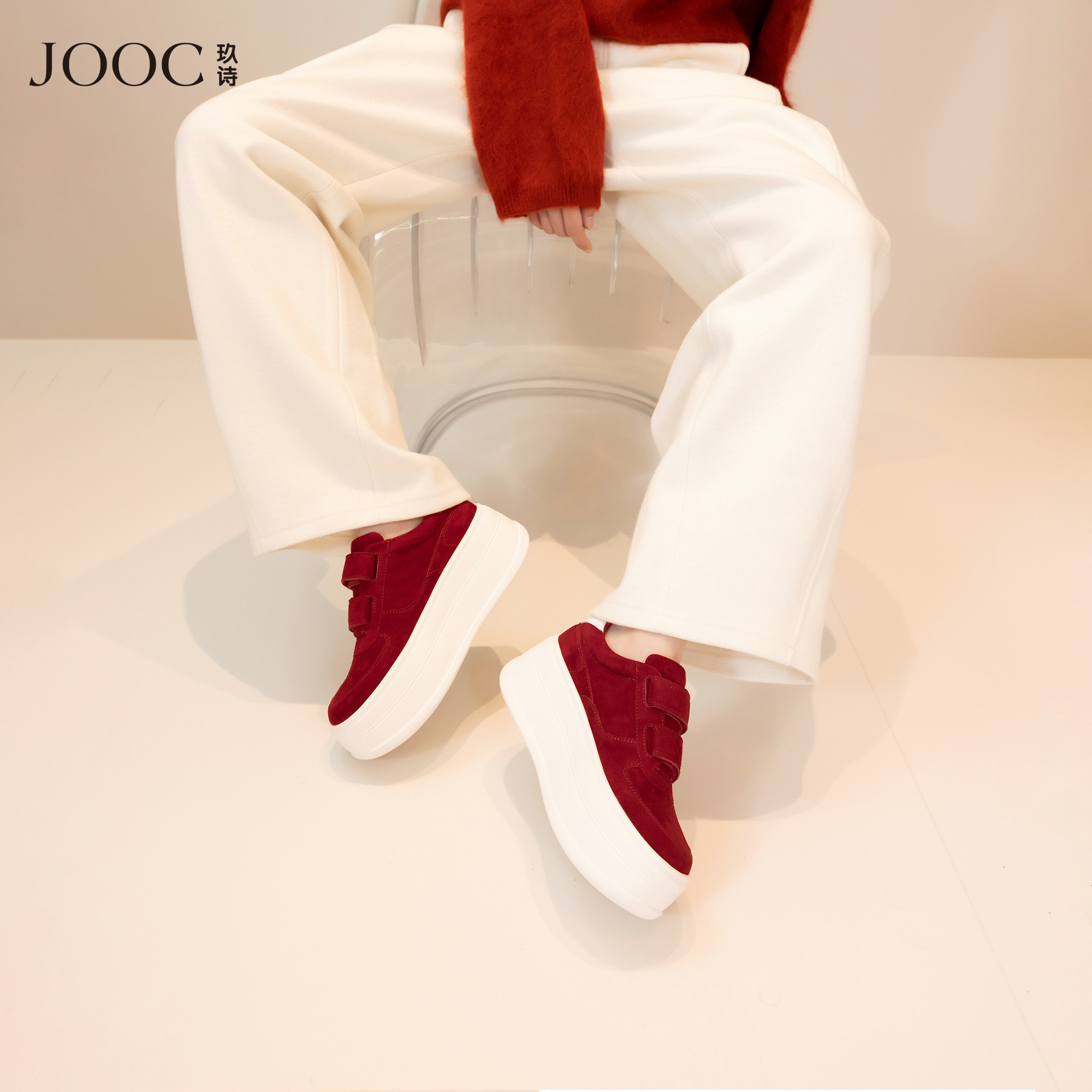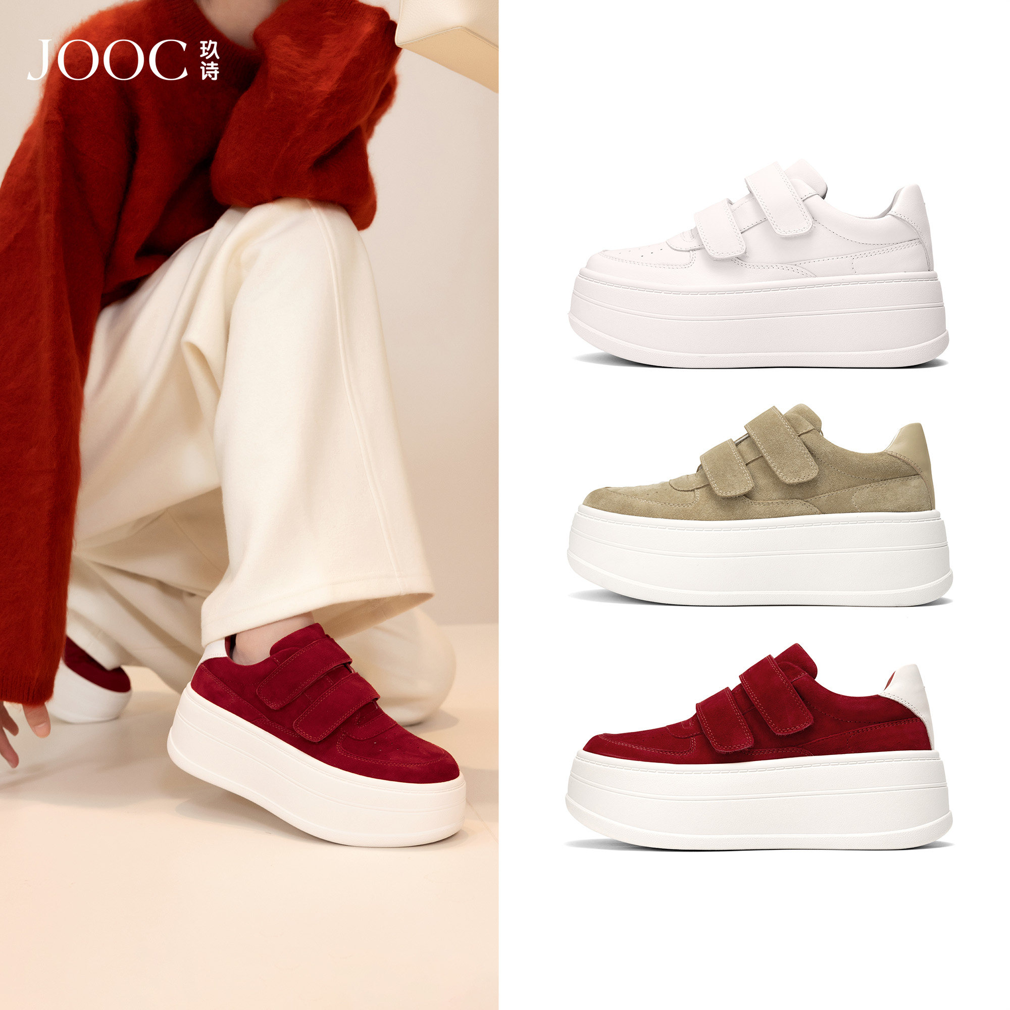 【丝绒慕斯】JOOC玖诗新年红魔术贴增高休闲鞋2026春季新款松糕鞋