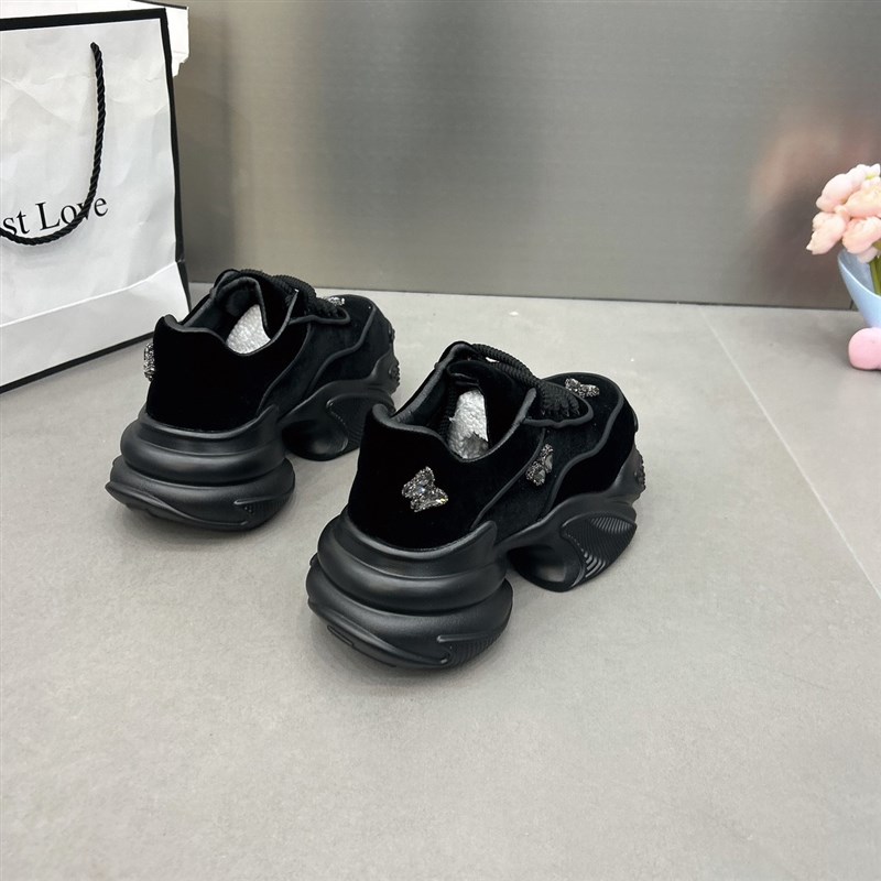 蝴蝶水钻加绒老爹鞋女ins潮新款百搭金丝绒厚底松糕增高舒适潮鞋