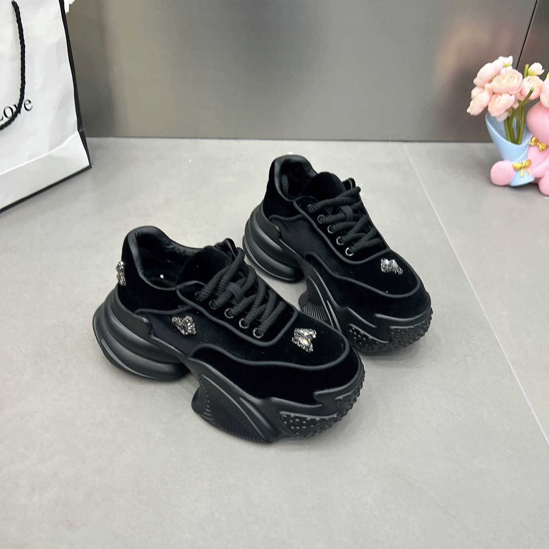 明星同款老爹鞋女ins潮春季新款百搭金丝绒厚底松糕水钻增高加绒