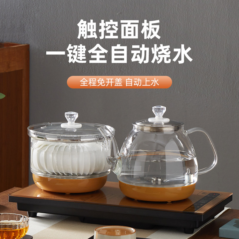 底部上水全自动电热烧水壶泡煮茶电磁炉茶炉功夫茶具玻璃双炉套装