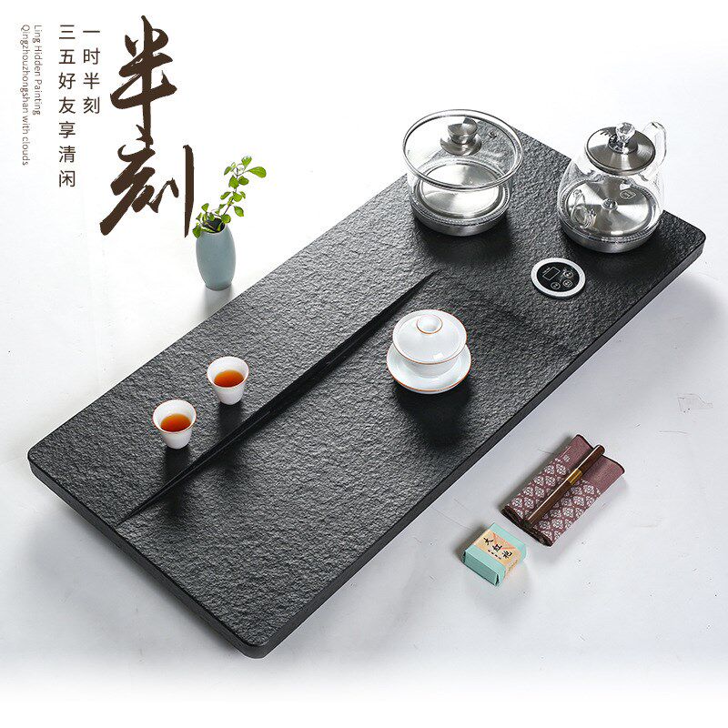天然乌金石茶盘套装全自动上水茶台烧水壶一体电磁炉功夫茶具家用