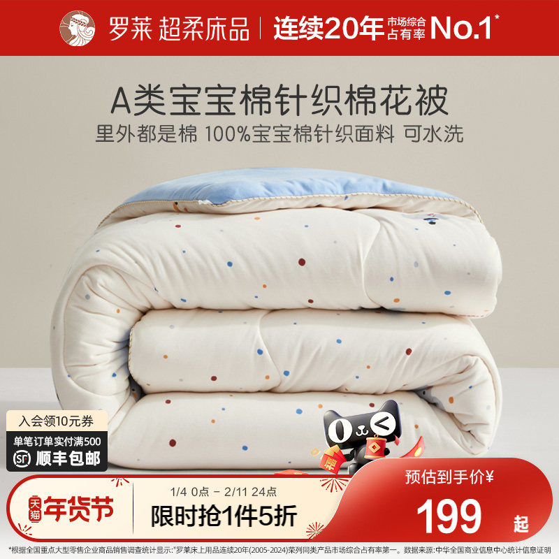 罗莱家纺儿童大豆被学生宿舍被子被芯A类冬被四季被二合一子母被