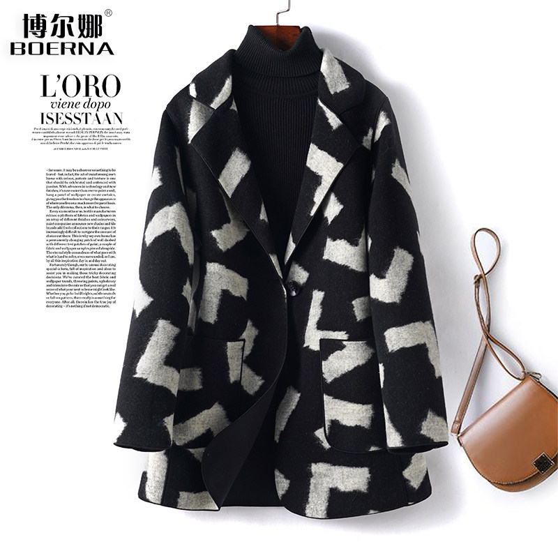羊毛大衣女常规黑色西装领修身气质双面呢子秋冬新款高端毛呢外套