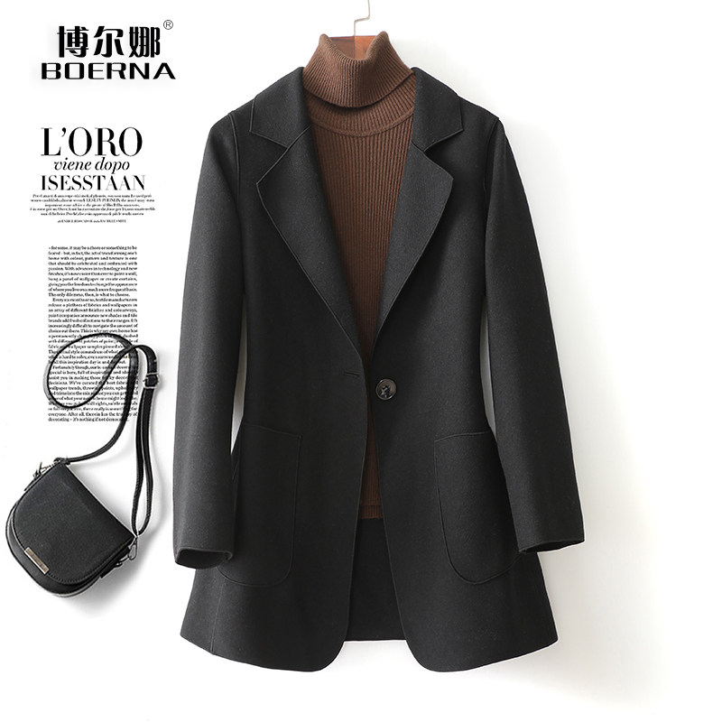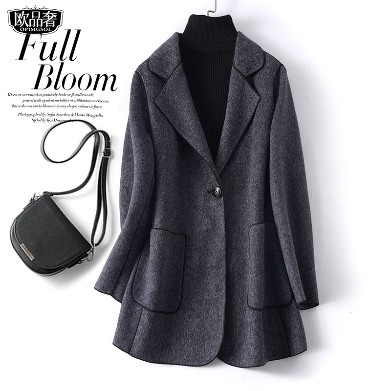 羊毛呢外套女常规款西装领一粒扣修身气质秋冬新款轻奢双面绒大衣