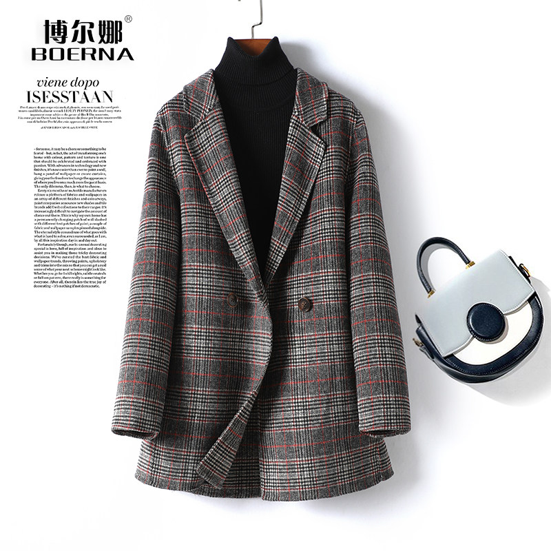 毛呢外套女常规款西装领修身气质千鸟格秋冬新款高档羊毛呢子大衣