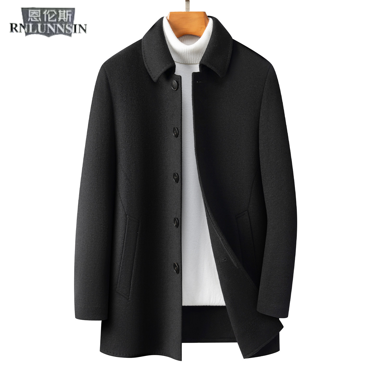 羊毛呢外套男夹克常规翻领黑色休闲羽绒内胆冬新款高档双面呢大衣