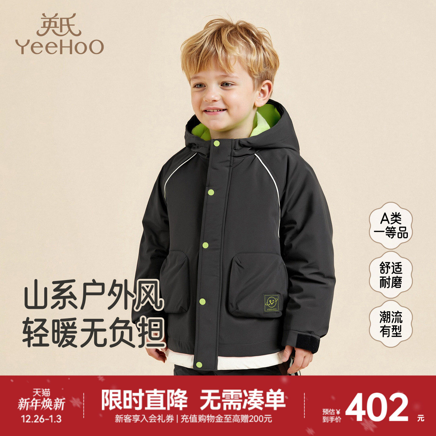 【商场同款】英氏男童夹克外套冬季保暖防寒户外潮流连帽百搭新款