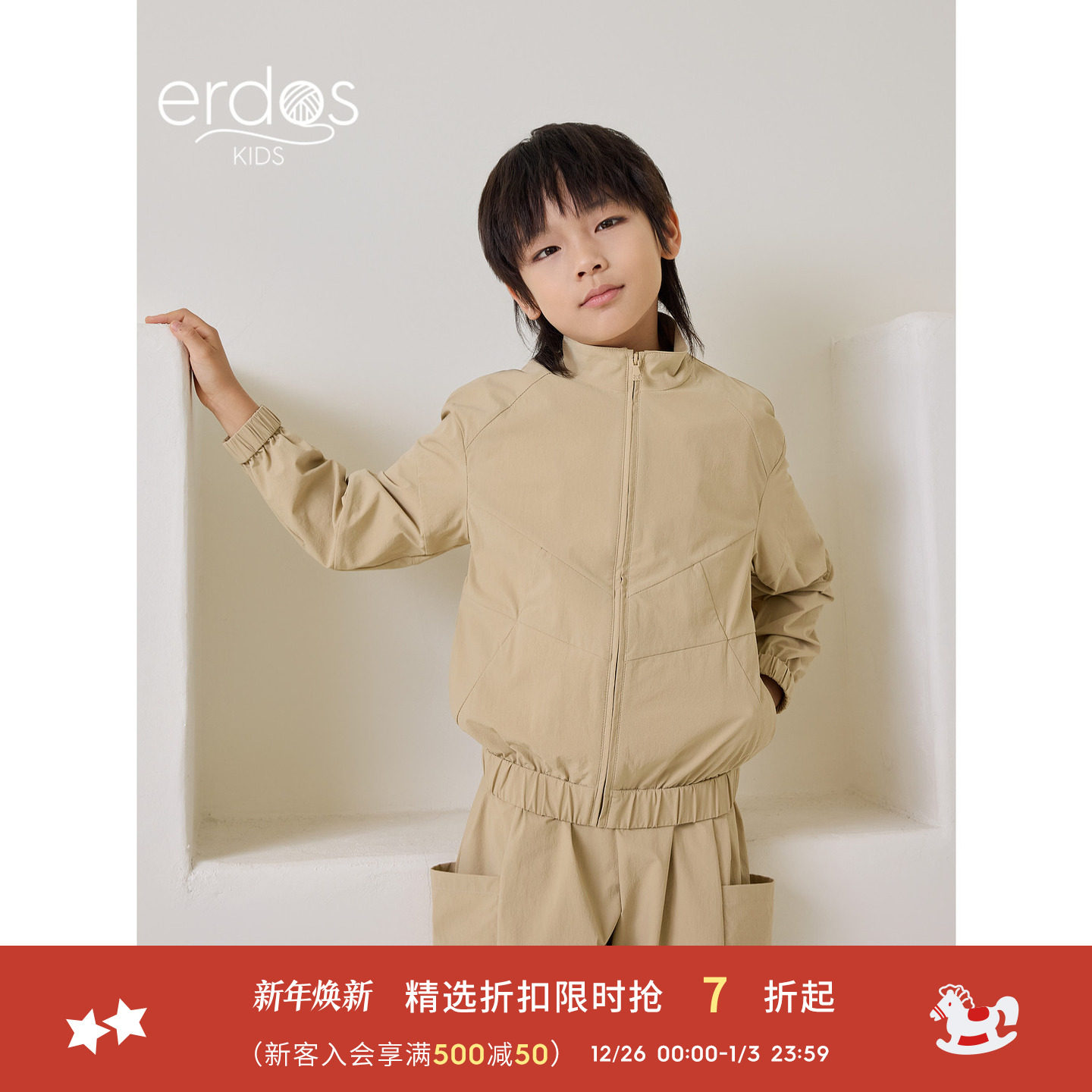 鄂尔多斯童装男童夹克外套女童25年秋冬新品立领拉链百搭儿童外套