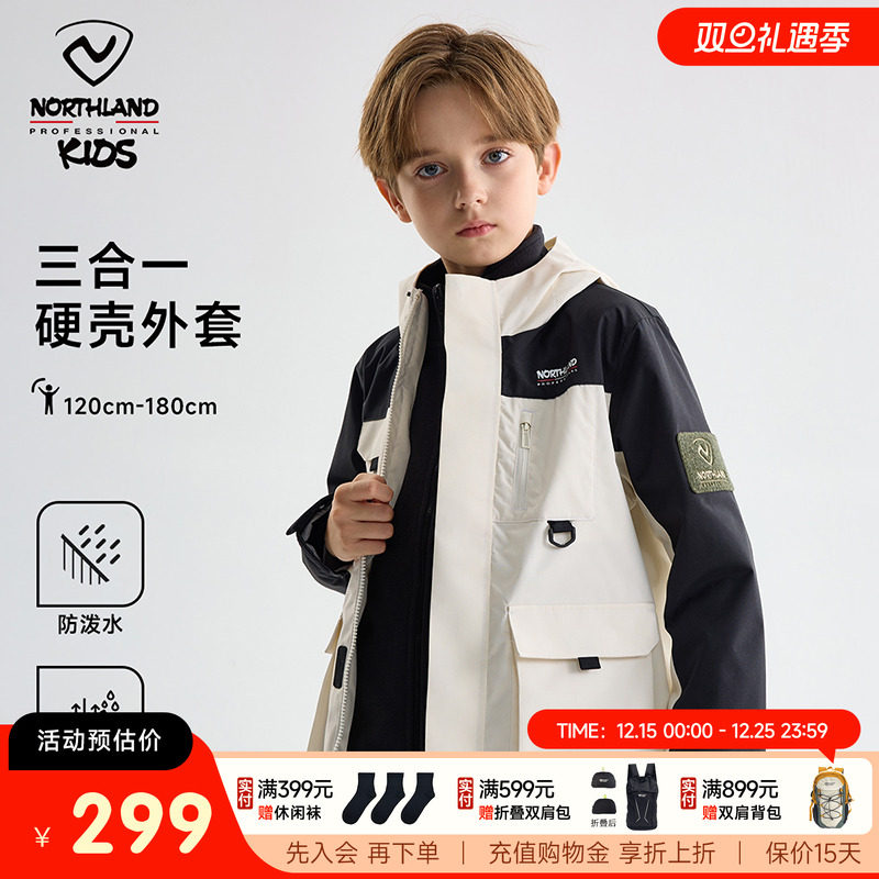 诺诗兰儿童冲锋三合一男童夹克外套可拆卸硬壳防风防泼水运动外套