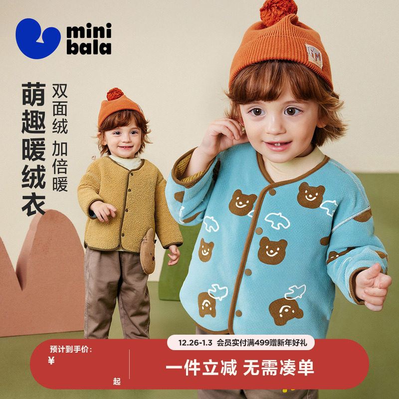 迷你巴拉巴拉男童女童毛绒外套冬季新款宝宝加厚舒适双面保暖夹克