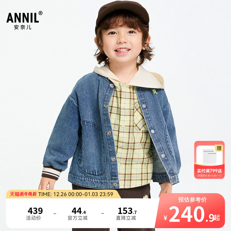 【商场同款】安奈儿童装男童夹克外套2025春新款休闲牛仔XB515565