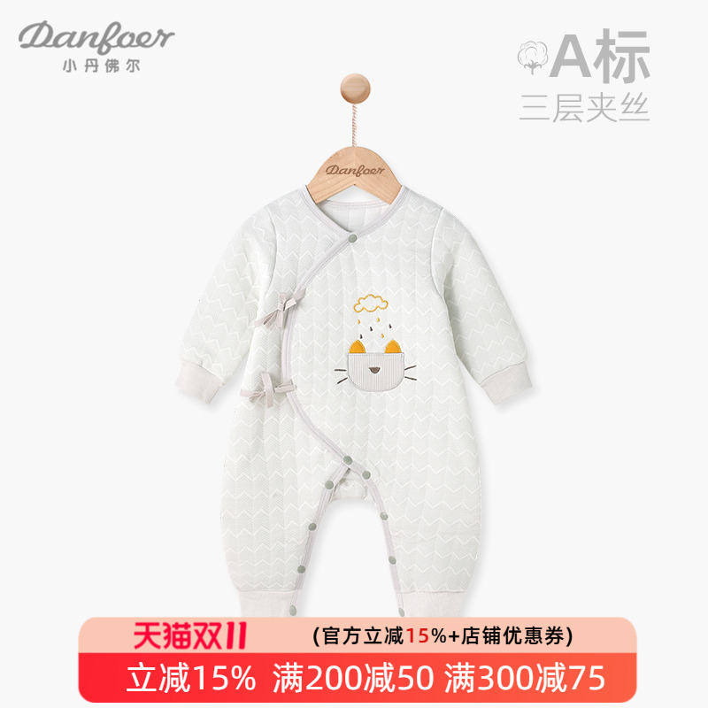 考拉蒂尔婴儿薄夹棉连身衣秋冬新生儿保暖连体衣宝宝纯棉衣服52码