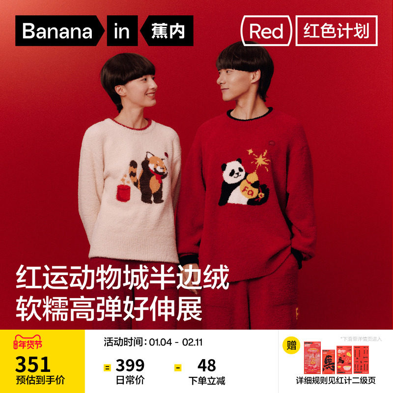 蕉内红色计划520Home女款冬季家居服男款本命年结婚情侣新款睡衣