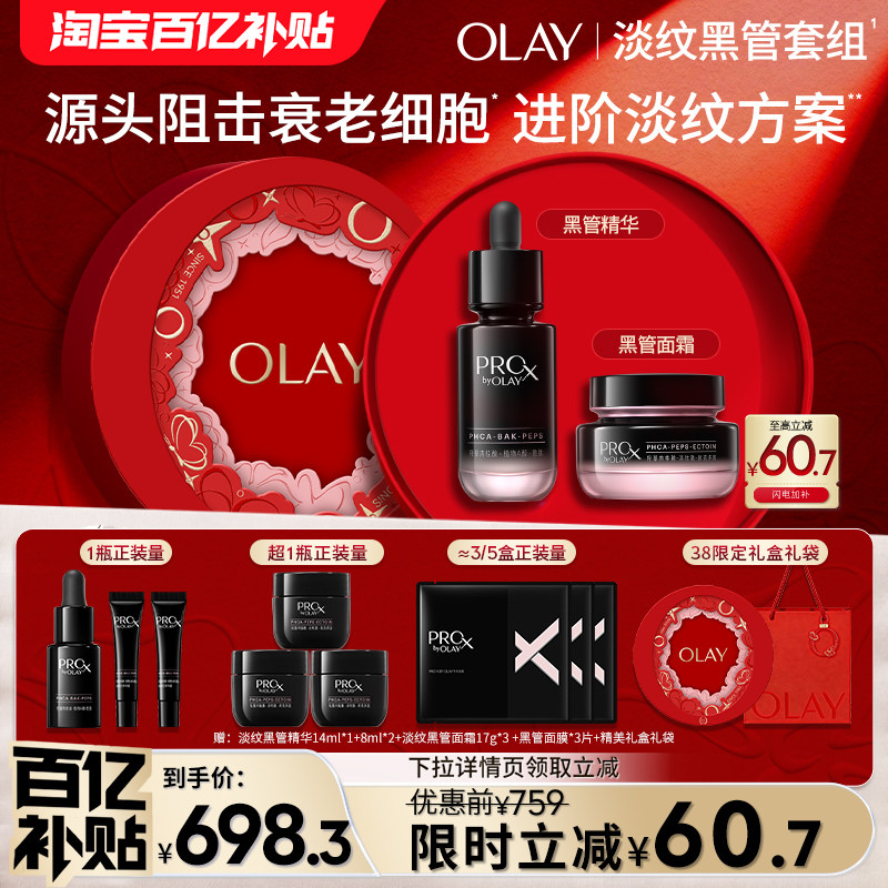 【U先】OLAY淡纹黑管精华面霜套组 抗老抗皱淡纹修护紧致旅行装