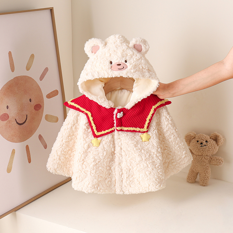 宝宝披风斗篷秋冬外出超萌连帽加绒披肩婴儿防风保暖上衣冬季外套