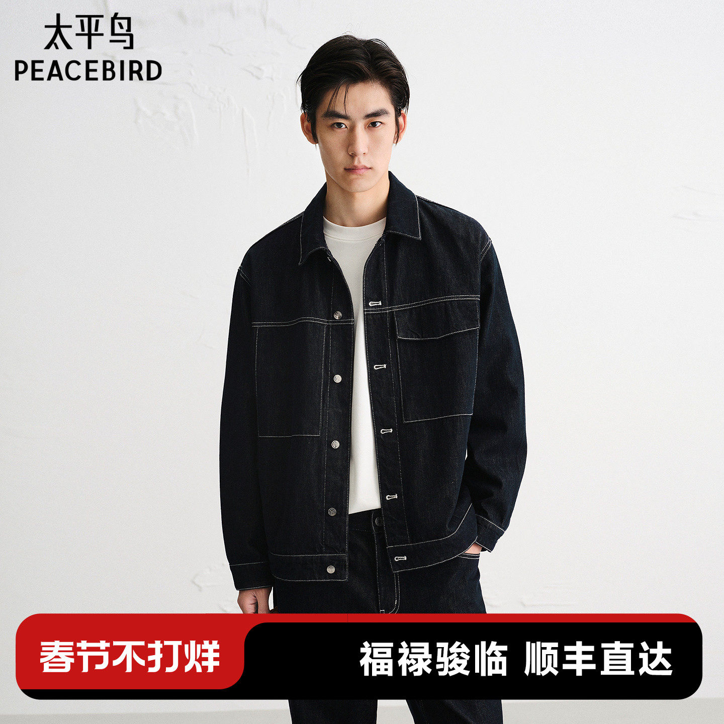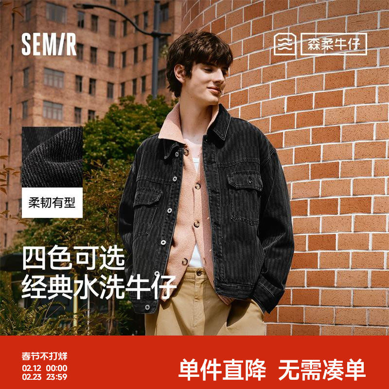 森柔牛仔|商场同款森马夹克男2024秋季新款复古牛仔外套宽松潮流