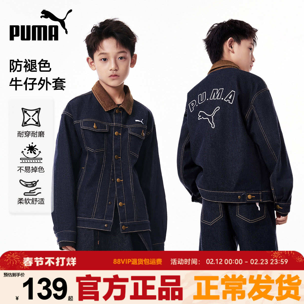 PUMA彪马儿童牛仔外套新款秋季男女童工装风夹克时髦洋气百搭长裤
