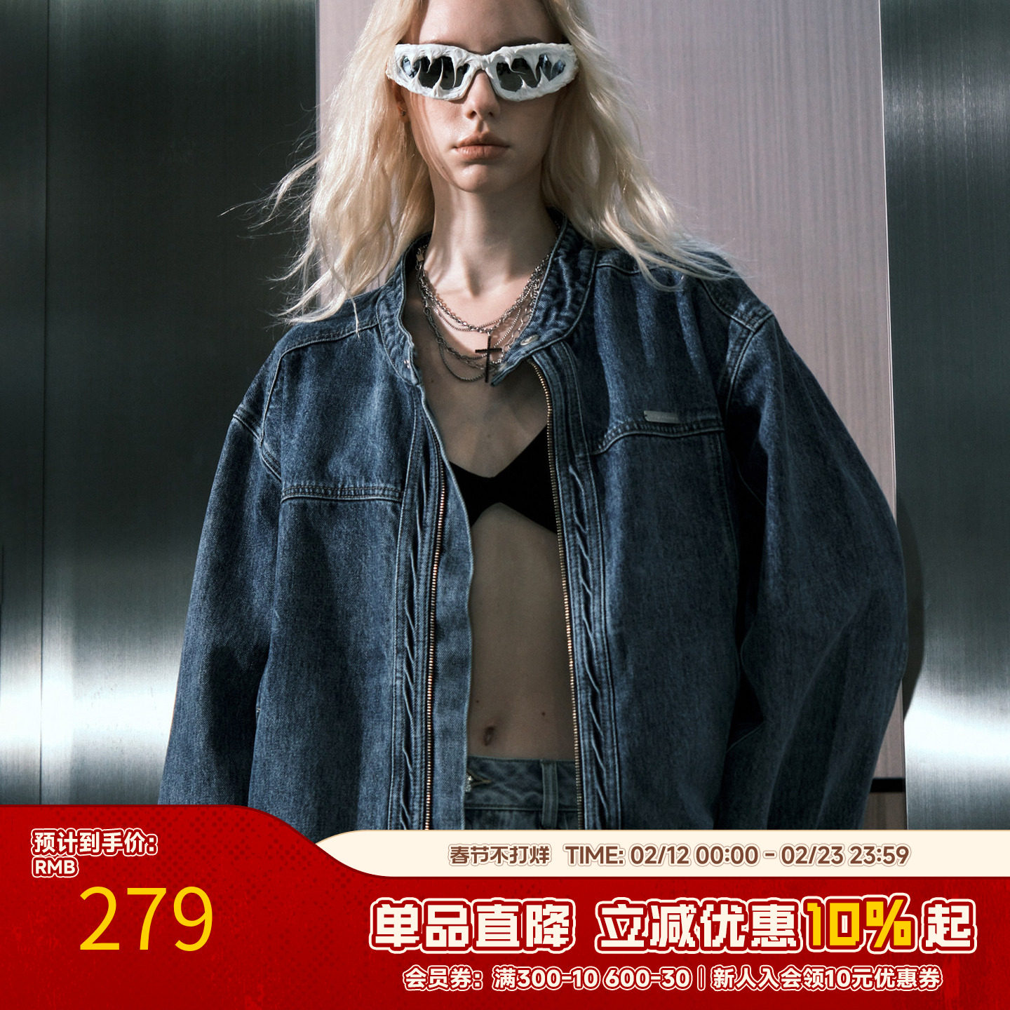 XMOB STUDIO新款秋季浅蓝色牛仔外套男潮流百搭夹克男宽松牛仔衣