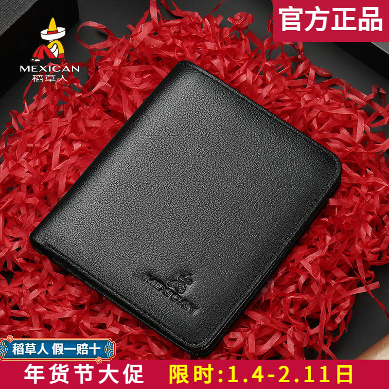 稻草人钱包男青年短款真皮休闲皮夹新款简约薄款零钱竖款牛皮钱夹