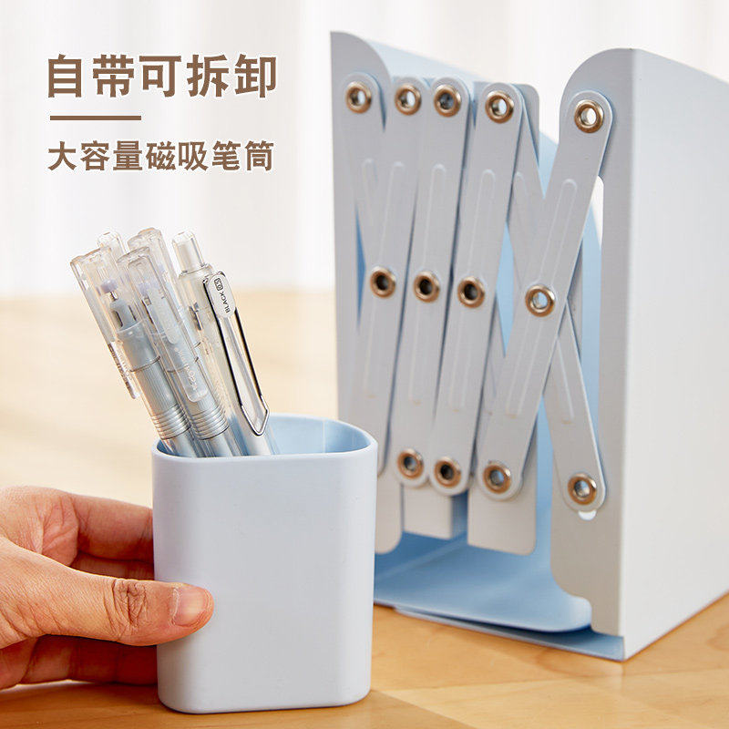 三年二班可折叠书立大容量磁吸笔筒桌面置物收纳多功能可伸缩书架