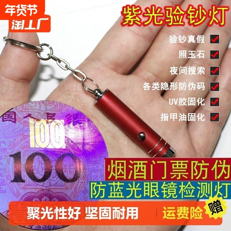 紫光花瓶验钞灯荧光笔钥匙扣检测镜片uv365蓝光波长395验钞机/器
