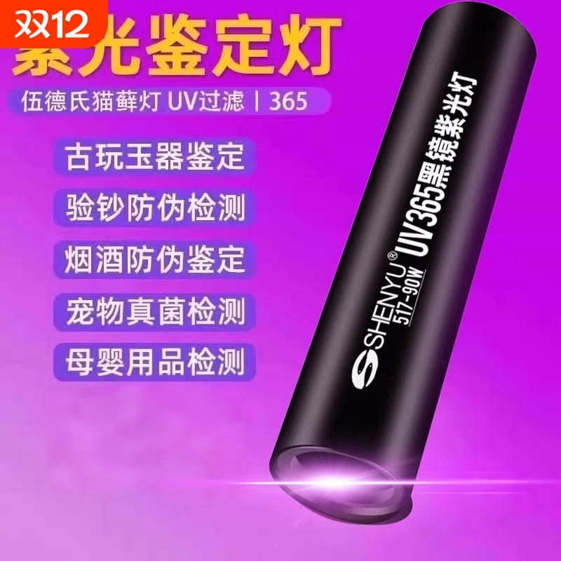 紫光灯鉴定专用验钞365nm鉴别烟酒翡翠照玉石手电筒紫外线检测笔