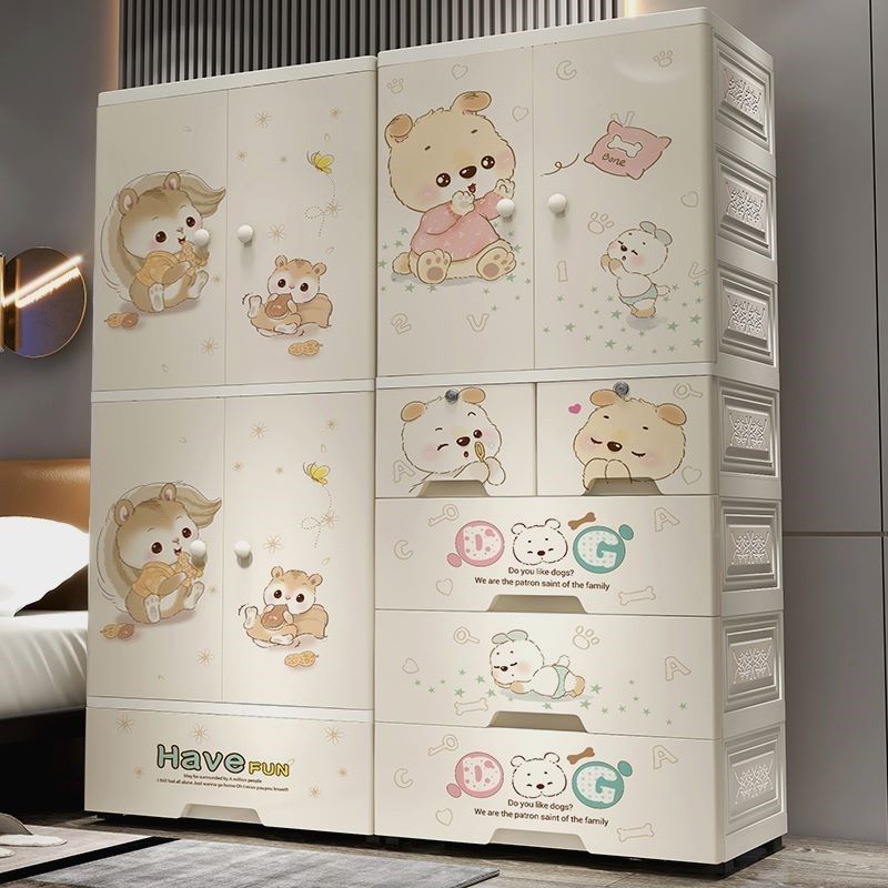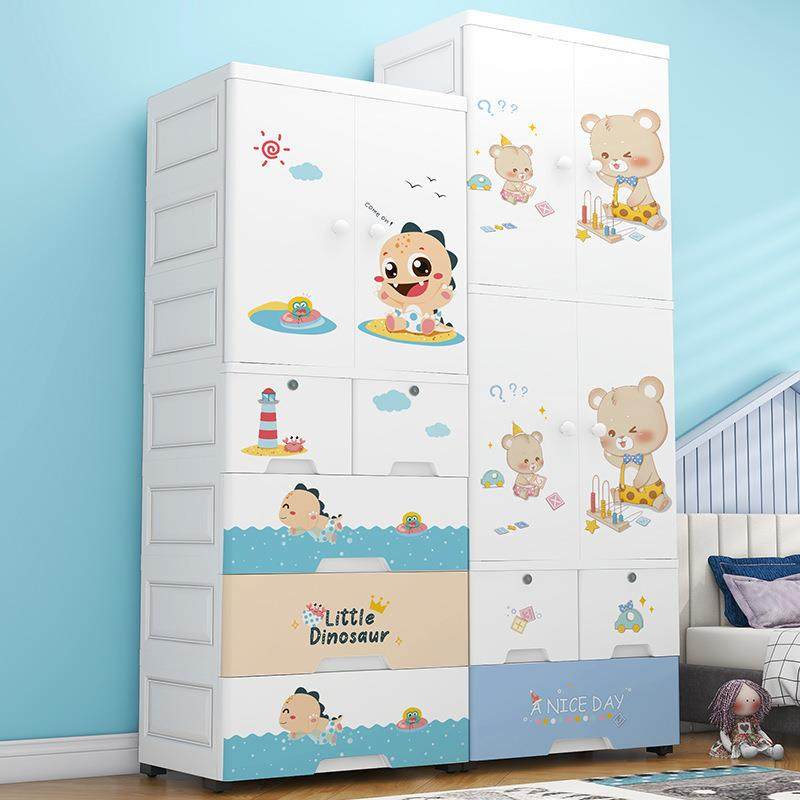 双开门挂衣式带小抽屉卡通儿童衣柜塑料宝宝收纳柜婴儿多层储物柜