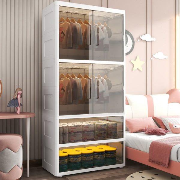 加厚挂衣式收纳柜家用塑料可折叠卧室儿童衣柜分层宝宝衣服储物柜