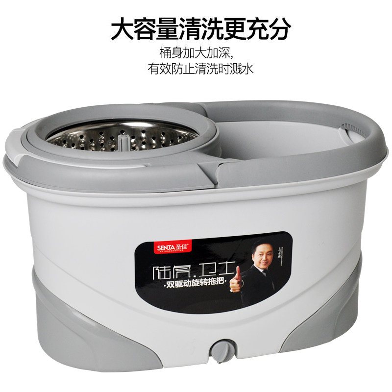 圣佳旋转免手洗省力拖把双驱动家用懒人拖布甩干桶金属篮路虎卫士