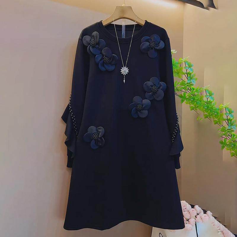 胖妹妹独特立体花朵遮肚子卫衣裙韩版设计感百搭连衣裙加大码裙子