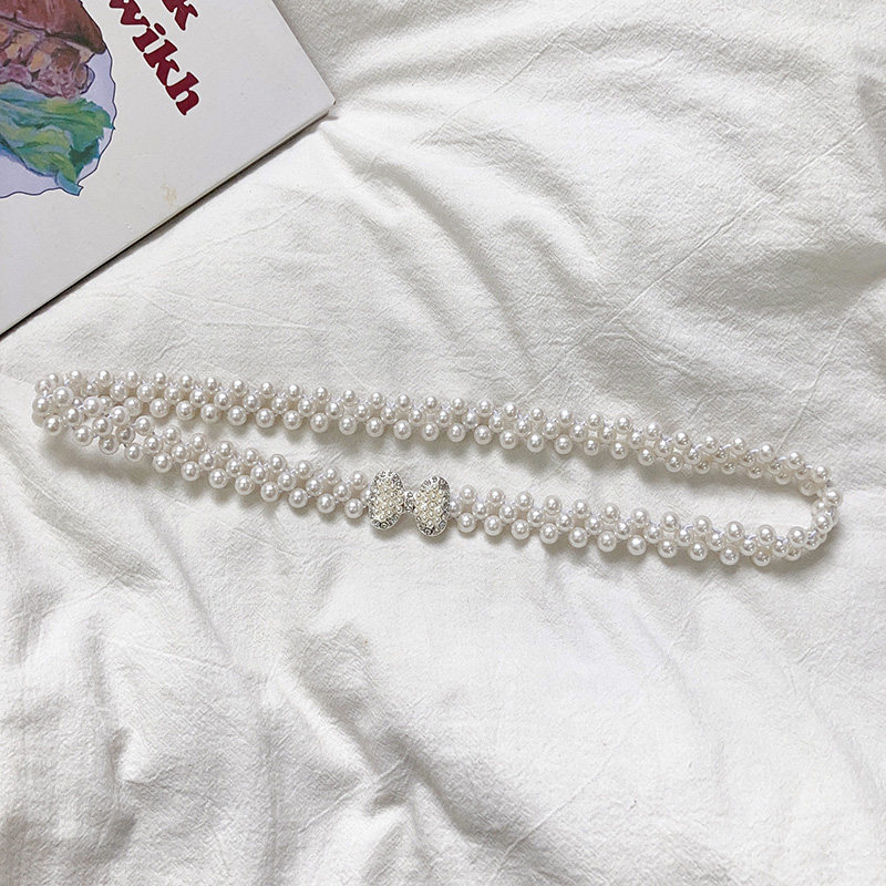 韩版时尚珍珠腰带女装饰连衣裙百搭松紧弹力腰链毛衣裙子收腰配饰