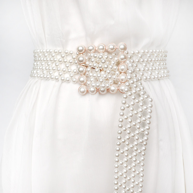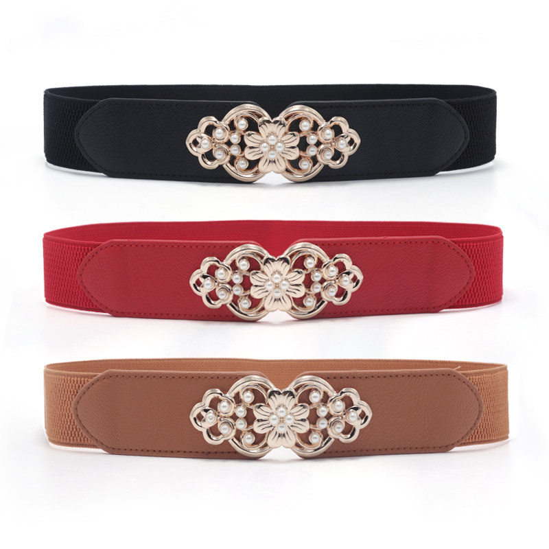 方扣宽皮带女装饰配韩版时尚腰封连衣裙配饰百搭简约珍珠复古腰带