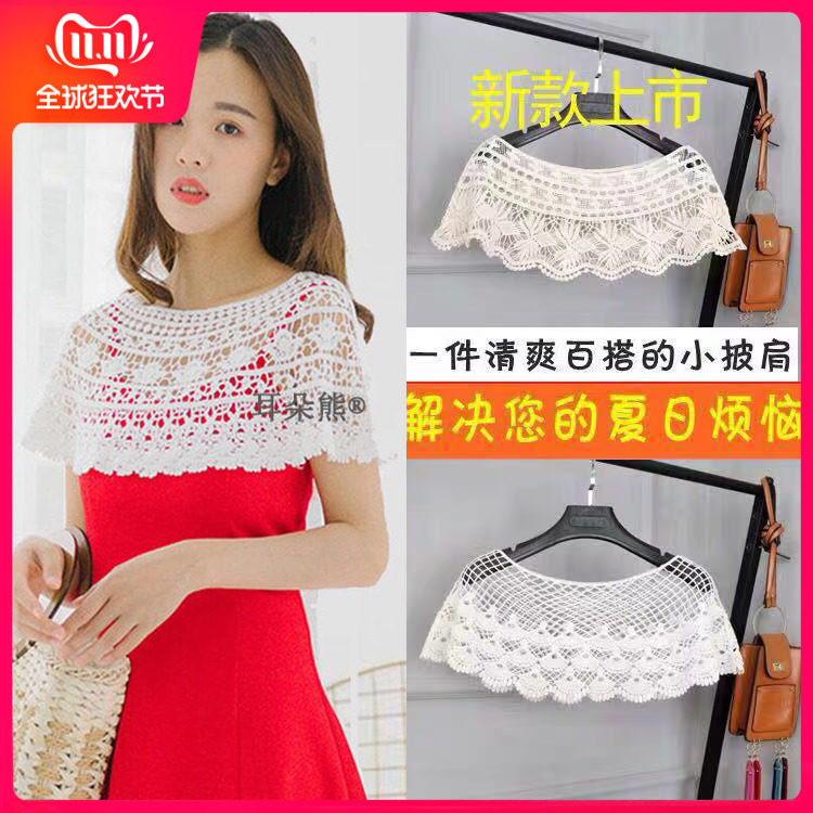 新款韩版连衣裙蕾丝小披肩百搭镂空罩衫女夏季小外套无袖衫小坎肩