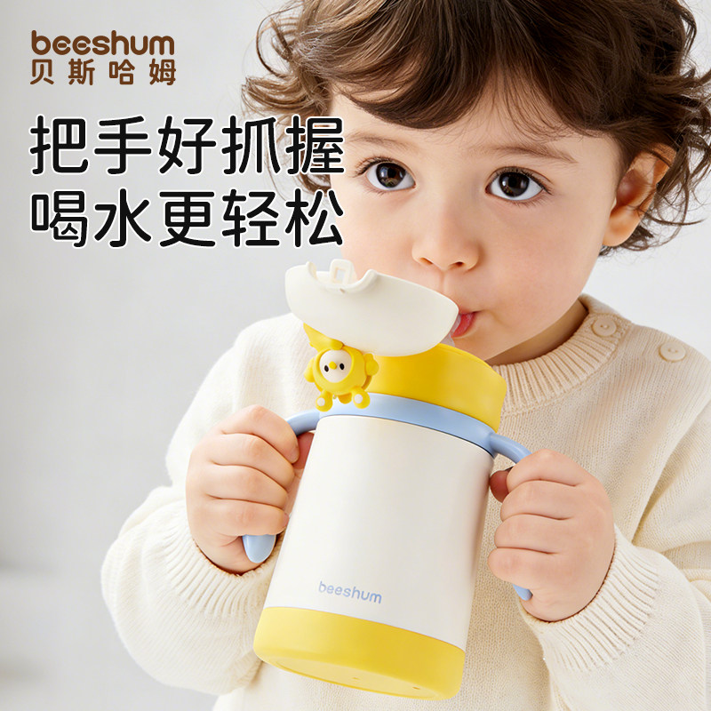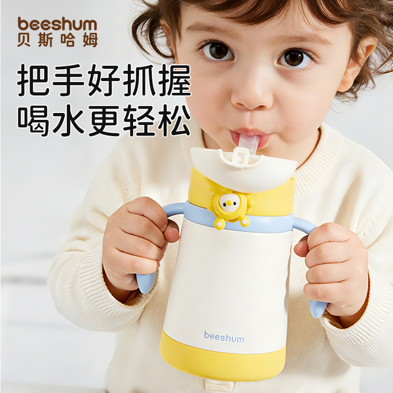 百优大宝宝保温杯直饮316L不锈钢1-3岁宝宝带手柄水杯保温吸管杯