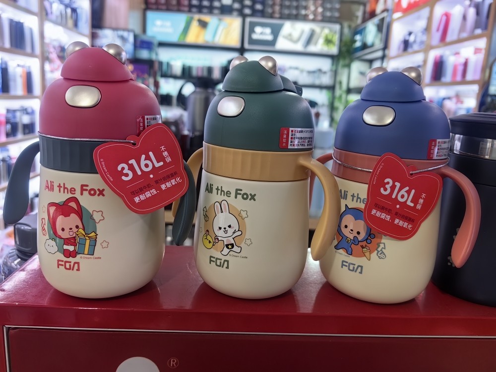 富光巴布手柄保温杯带吸管316水杯子宝宝婴幼儿园外出便携喝水壶