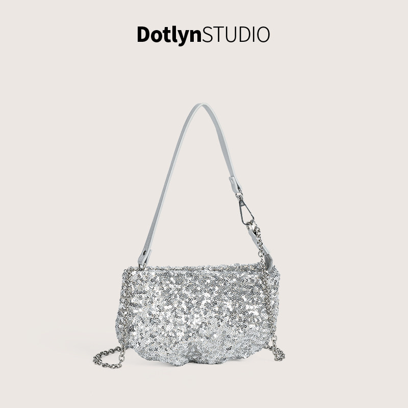 Dotlyn高级感洋气百搭单肩包斜挎包2025亮片轻奢通勤手提晚宴包女