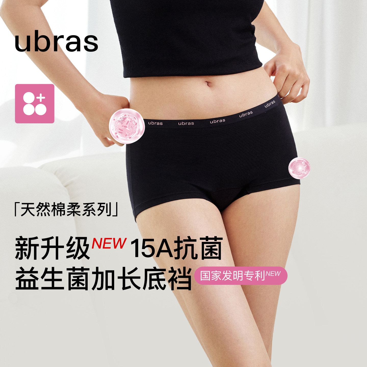 ubras新疆棉内裤女士中腰平角裤15A抗菌26年新款加长底裆短裤3条