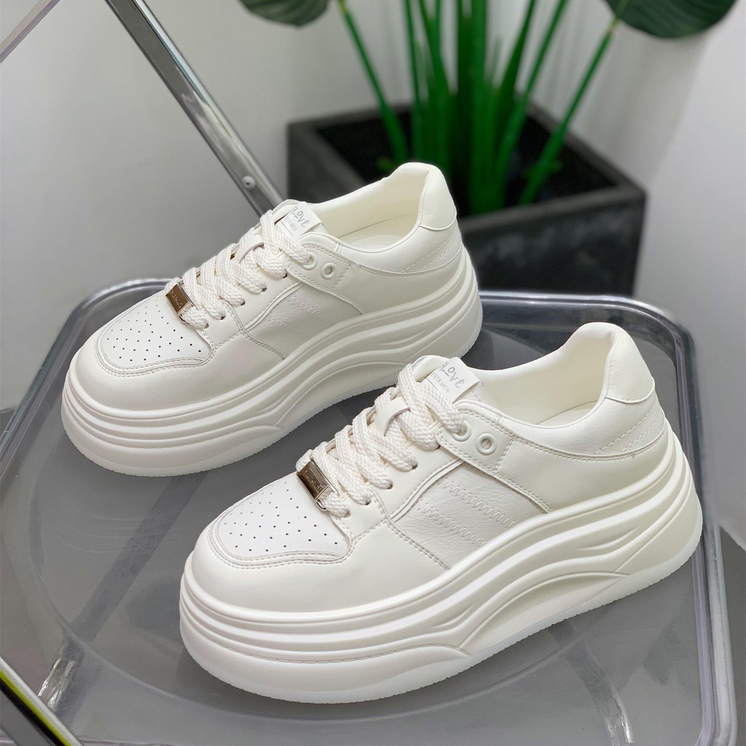 学院风简约百搭圆头真皮厚底小白鞋女2025秋季新款通勤增高休闲鞋