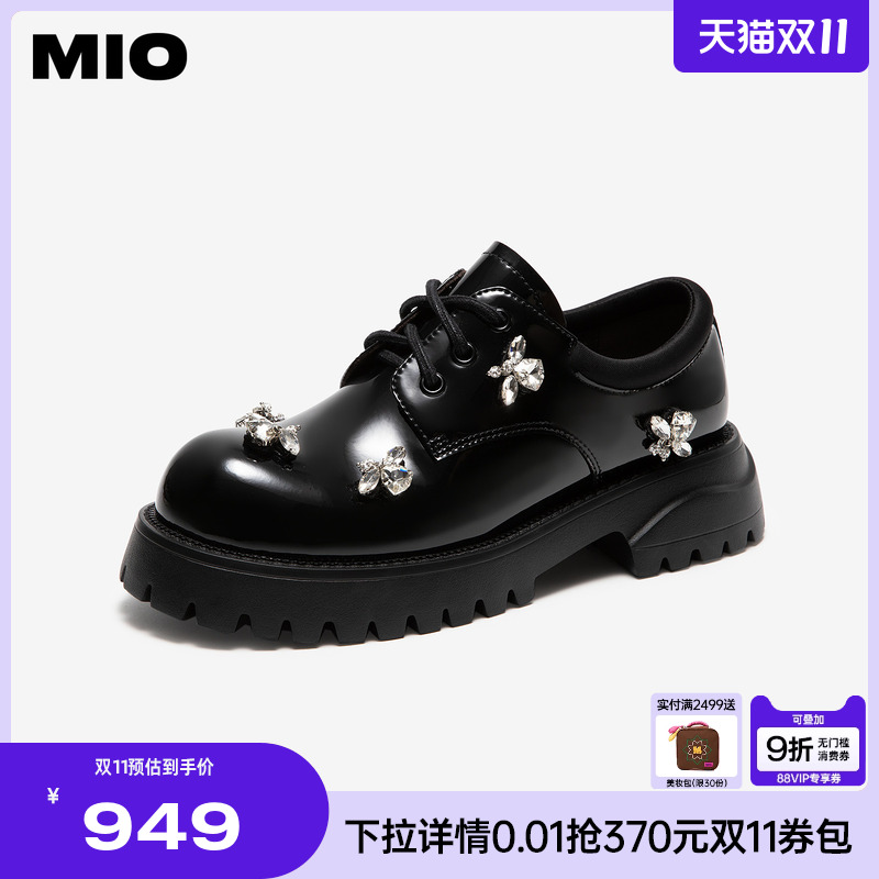 MIO米奥2025秋季新款牛津鞋圆头学院风千金乐福钻饰厚底松糕鞋女